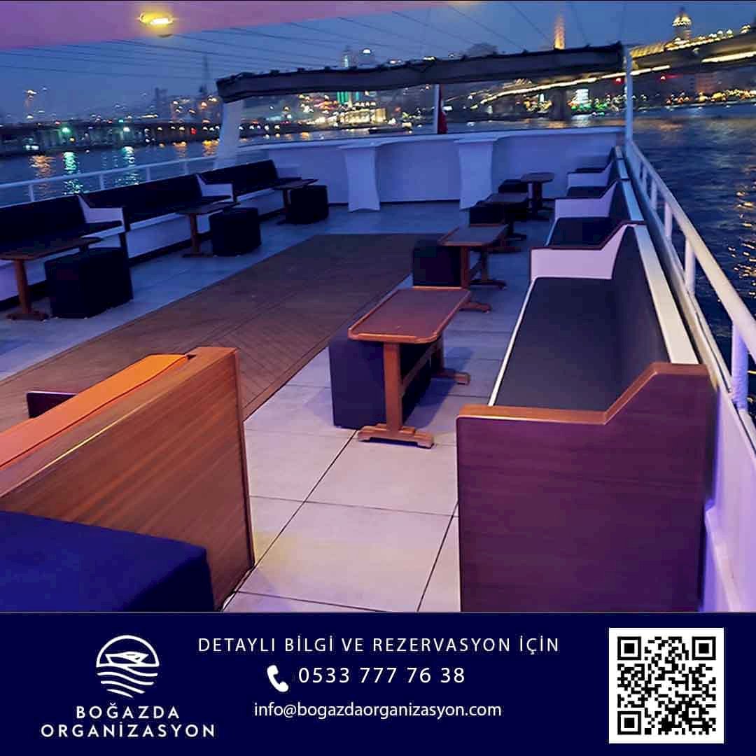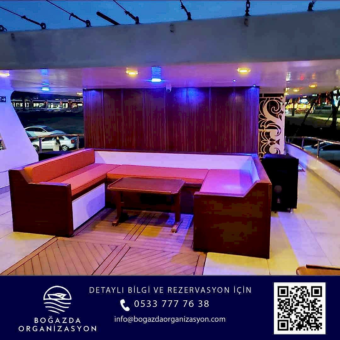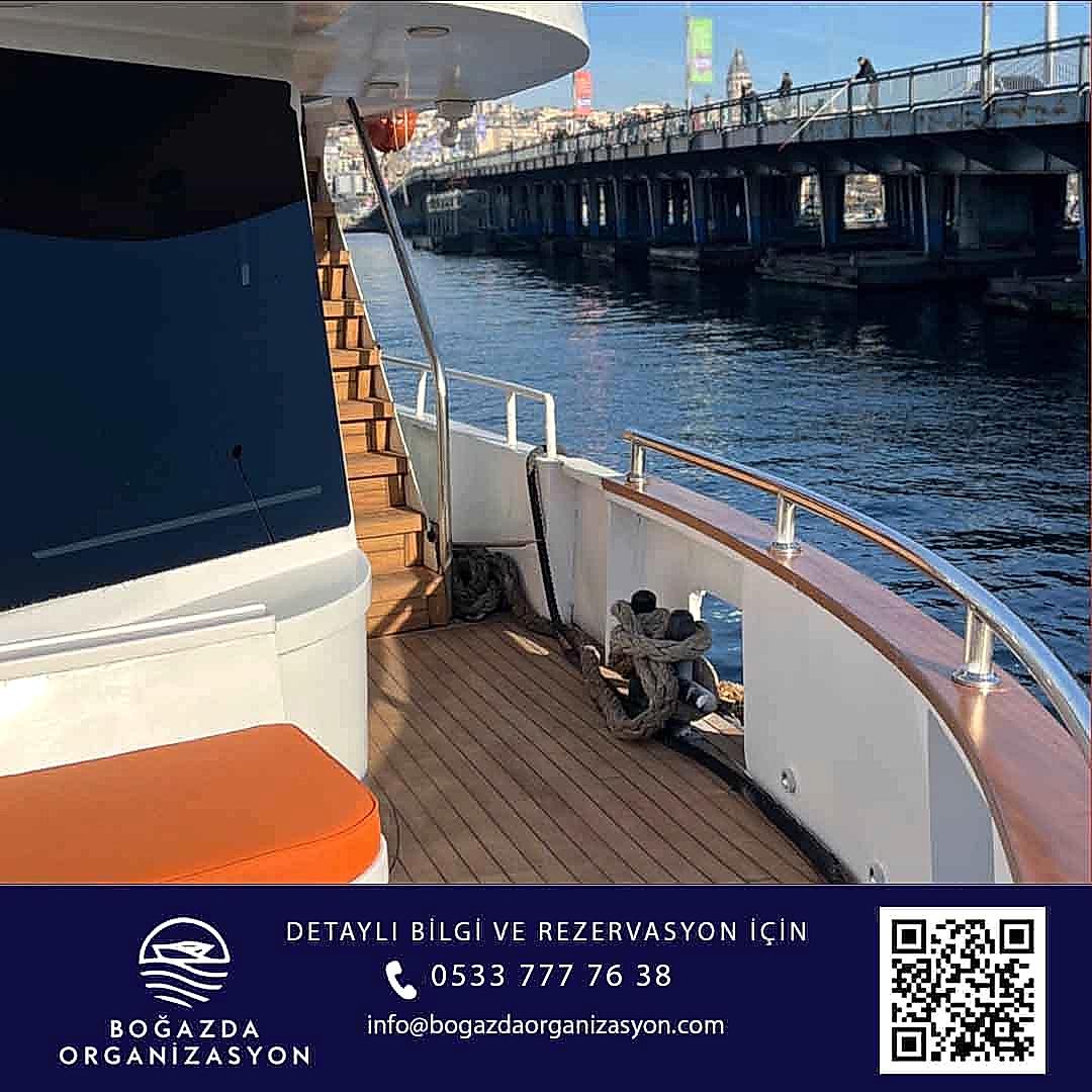 İstanbul'un muhteşem manzarasına karşı 100 kişilik teknemizle keyifli bir deniz yolculuğuna çıkabilir, sevdiklerinizle veya iş arkadaşlarınızla unutulmaz anılar biriktirebilirsiniz. Teknemiz, konforlu iç mekanları ve leziz yemek seçenekleriyle size ve konuklarınıza unutulmaz bir deneyim sunmak için tasarlanmıştır.