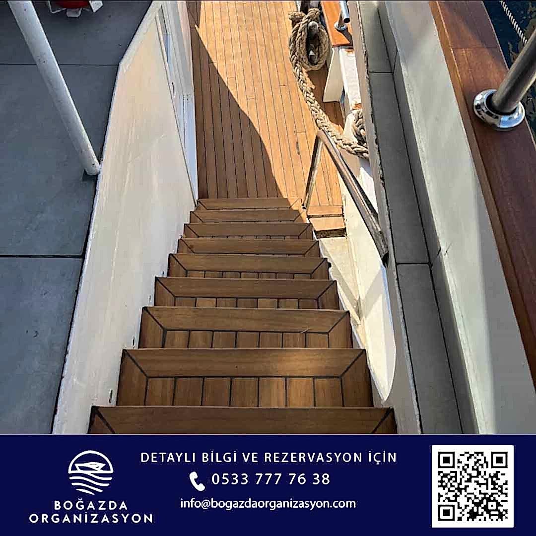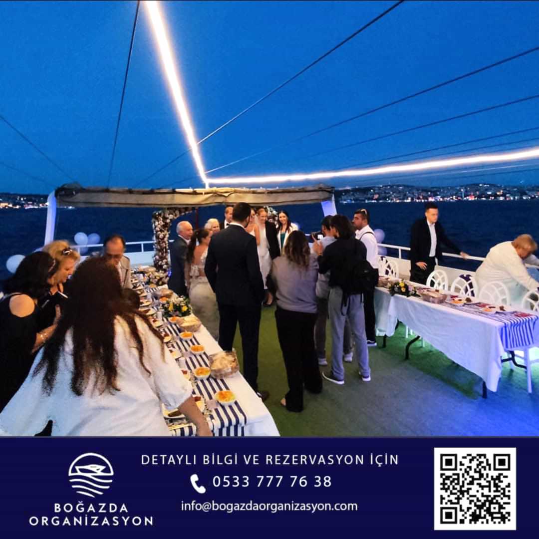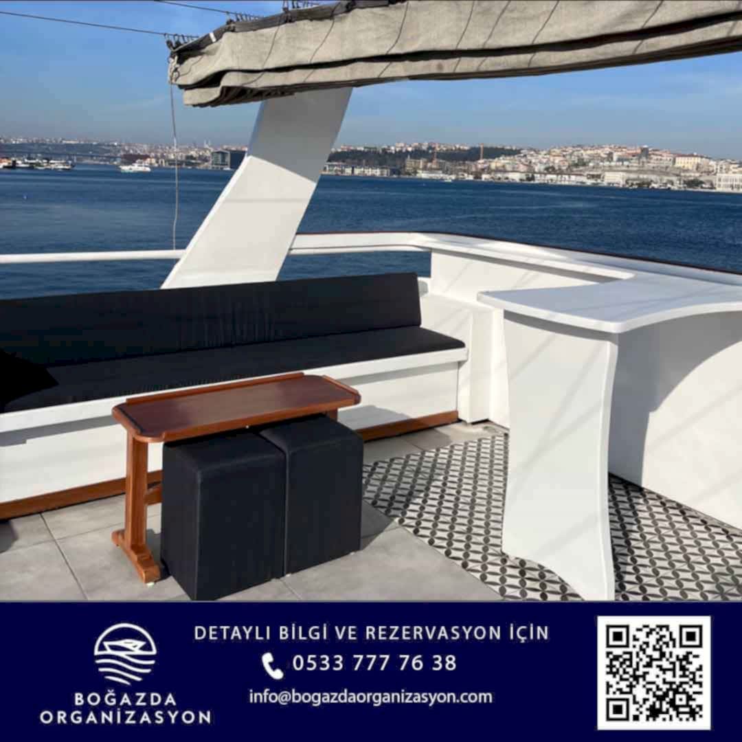 İstanbul'un muhteşem manzarasına karşı 100 kişilik teknemizle keyifli bir deniz yolculuğuna çıkabilir, sevdiklerinizle veya iş arkadaşlarınızla unutulmaz anılar biriktirebilirsiniz. Teknemiz, konforlu iç mekanları ve leziz yemek seçenekleriyle size ve konuklarınıza unutulmaz bir deneyim sunmak için tasarlanmıştır.