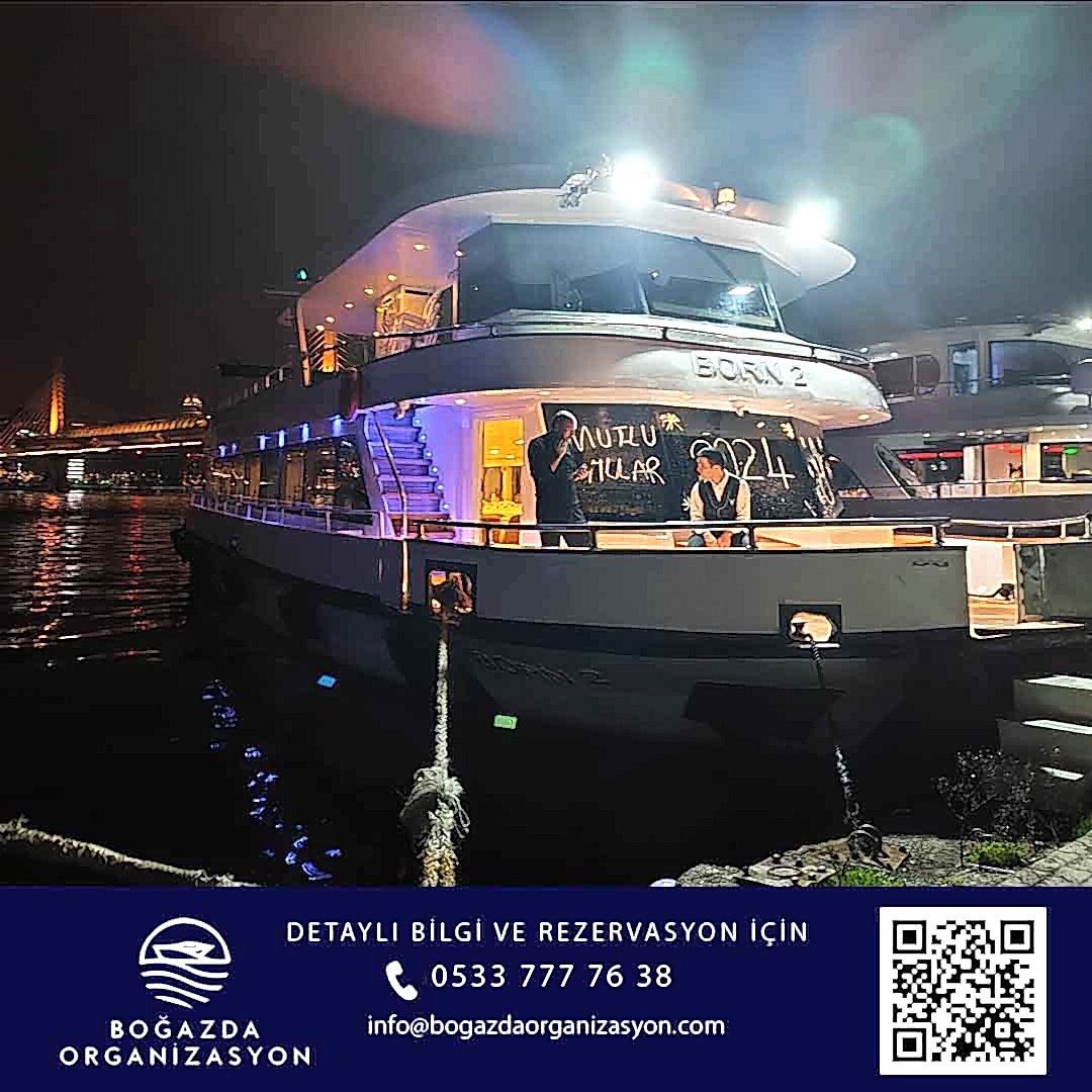 Sınırsız lüks ve konforun buluştuğu 80 kişilik VIP tekne deneyimine hoş geldiniz! Modern tasarımıyla göz kamaştıran bu tekne, unutulmaz anlar ve özel etkinlikler için mükemmel bir ortam sunuyor.